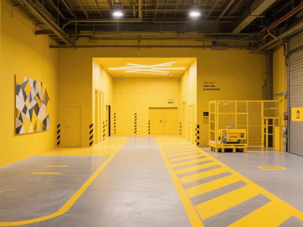 黄色是一种充满活力与温暖的色彩,在工业厂库这一领域,它兼具醒目与实用性。在设计中,黄色常用于标志搬运区域、分隔功能区以及强调安全线。而随着艺术元素的融入,黄色逐渐成为厂库设计的主色调,不仅能提升空间辨识度,还能赋予场所带有艺术气息的氛围。